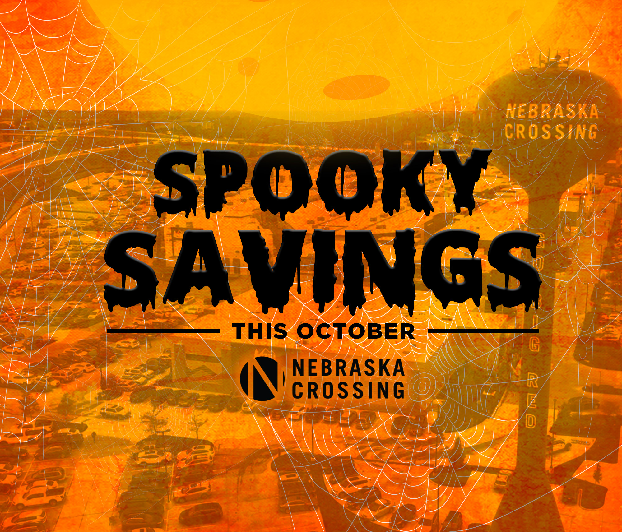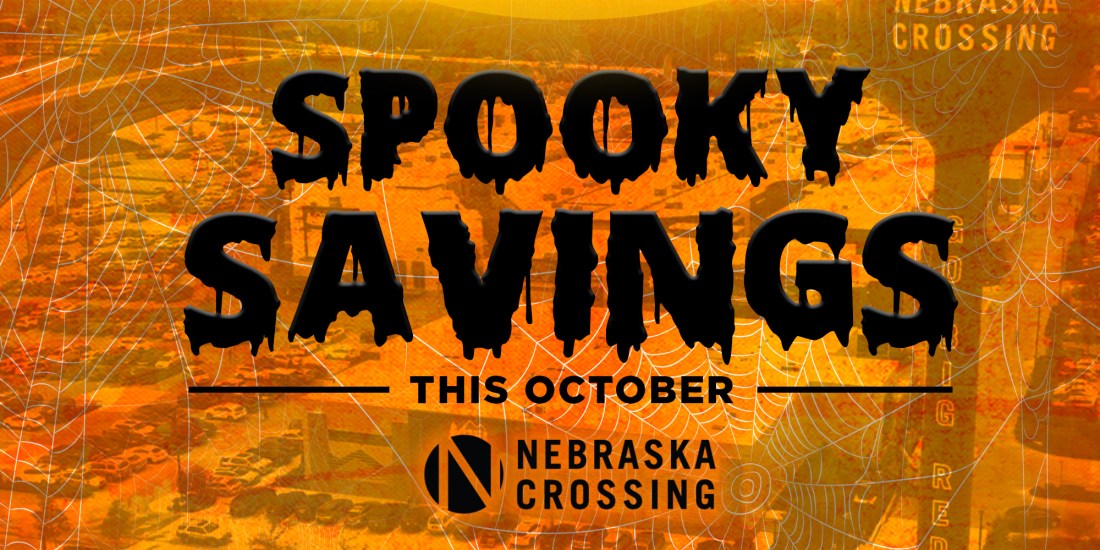 Treat yourself to spooktacular deals all October long at Nebraska Crossing! Store hours of operation are Monday-Saturday 10am-8pm and Sunday 11am-6pm.
