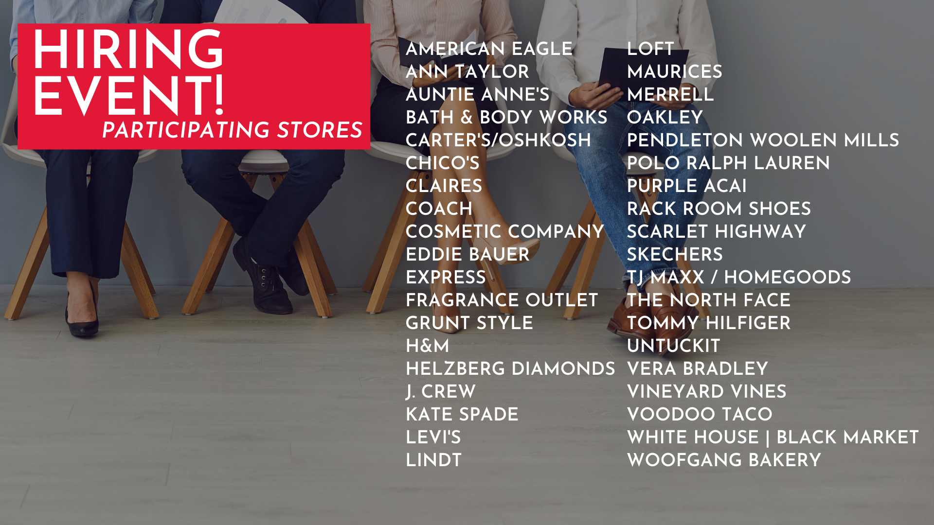 Stop into any of the participating stores for on-the-spot interviews!